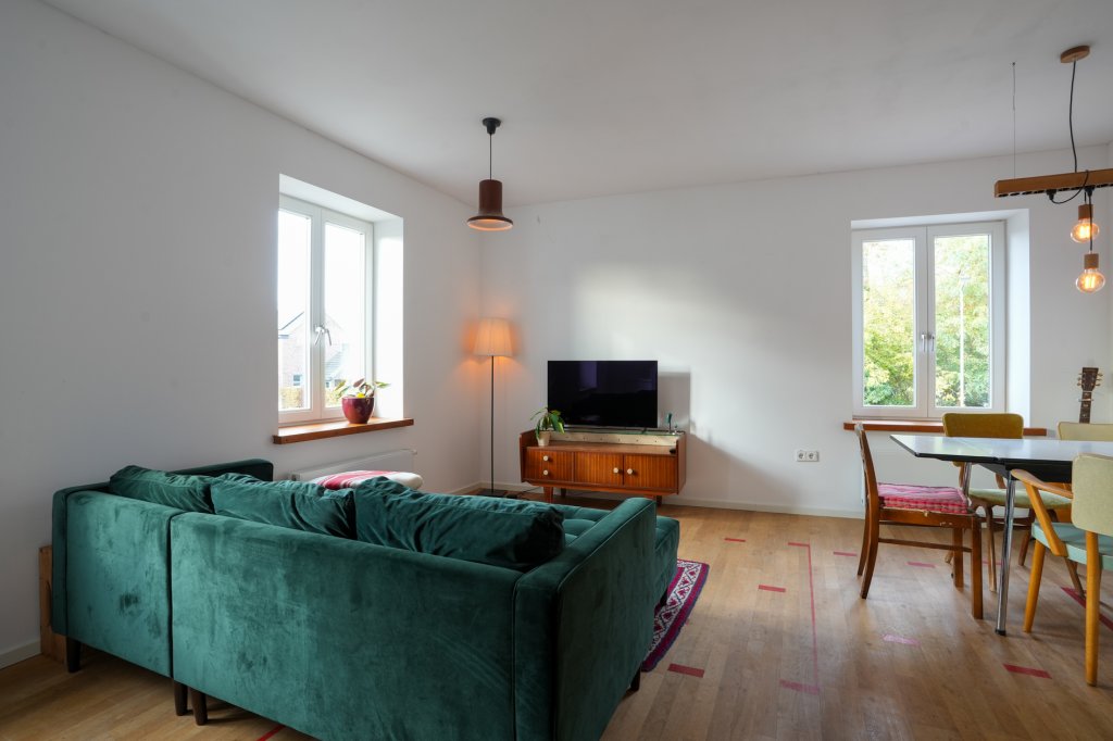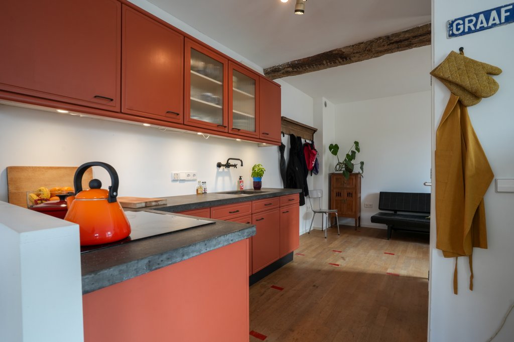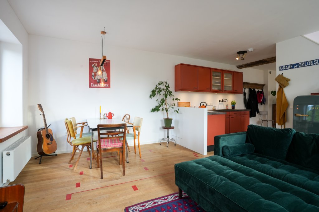 Ater de karaktervolle gièvel sjuilt ’n verrassend ruime woening die recènt volledig is gerenoveerd, mit behaad van autentieke details. Binne koëme sfeer en woencomfort prachtig saoème.
